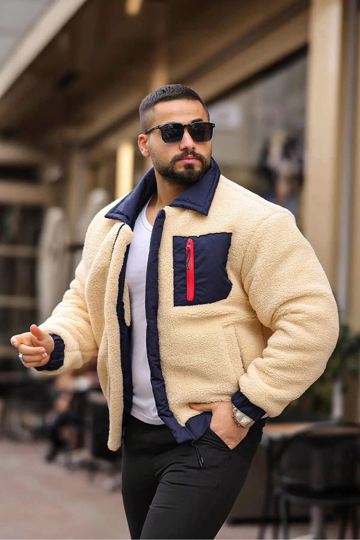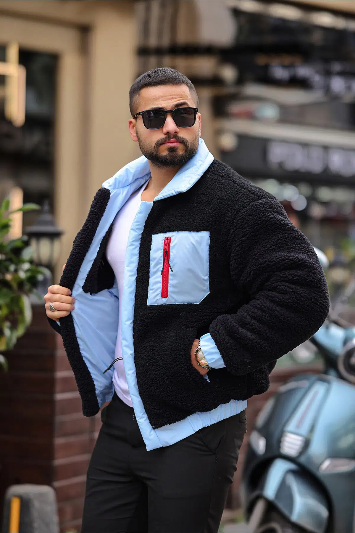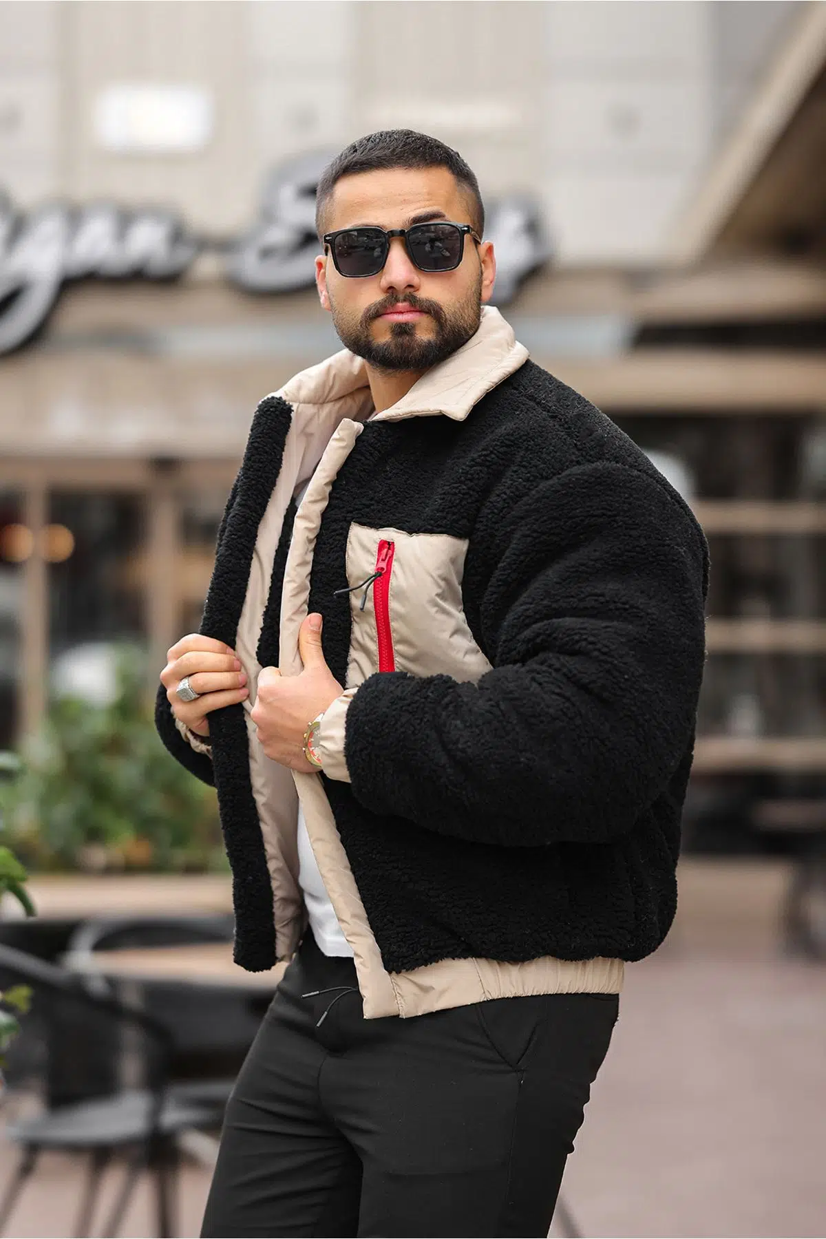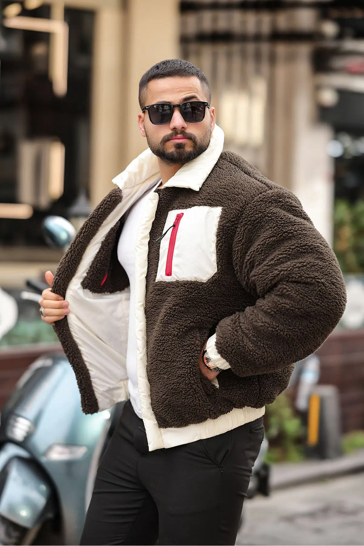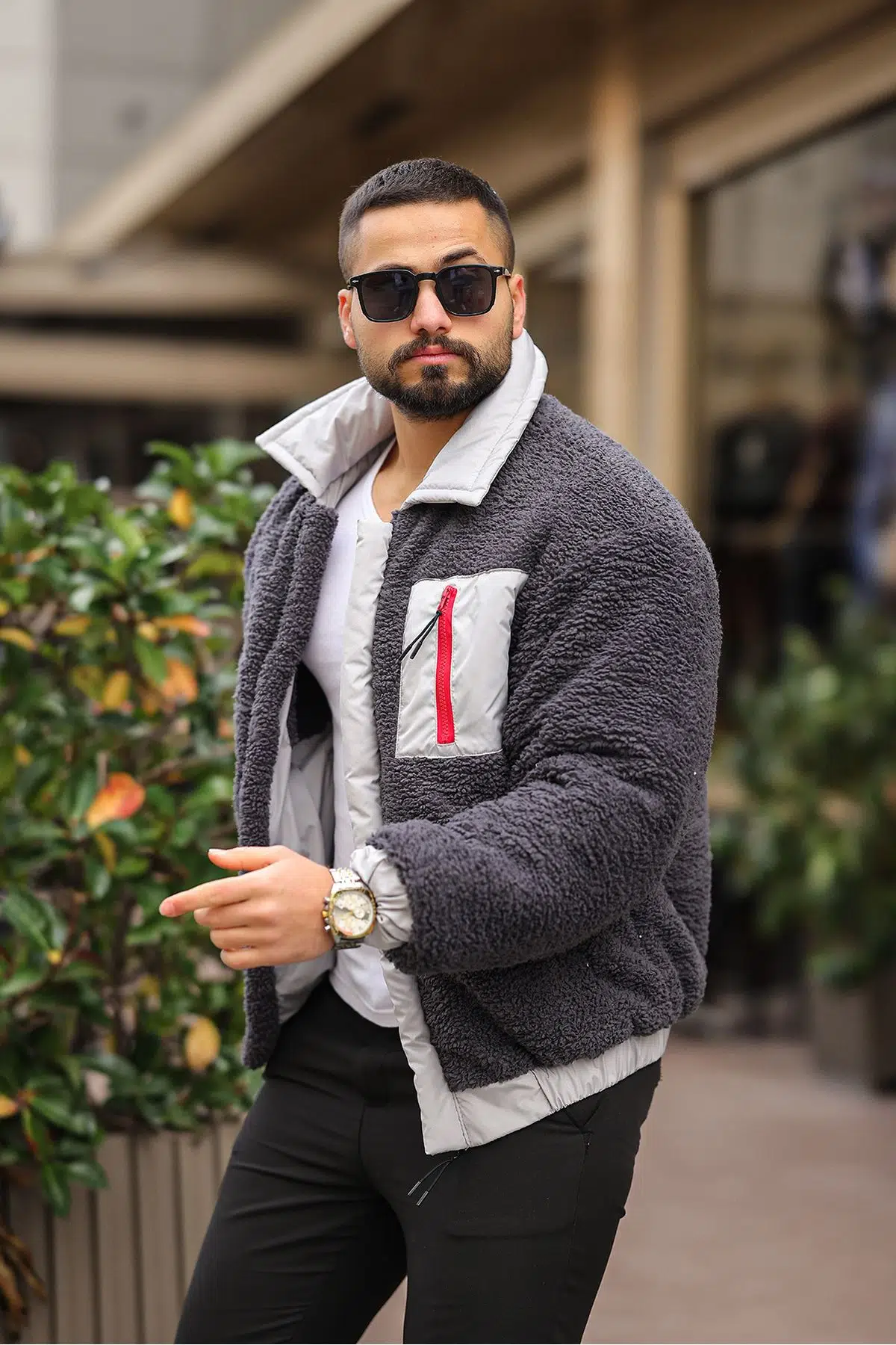 Çift Taraflı Giyilebilir Erkek Peluş Mont
