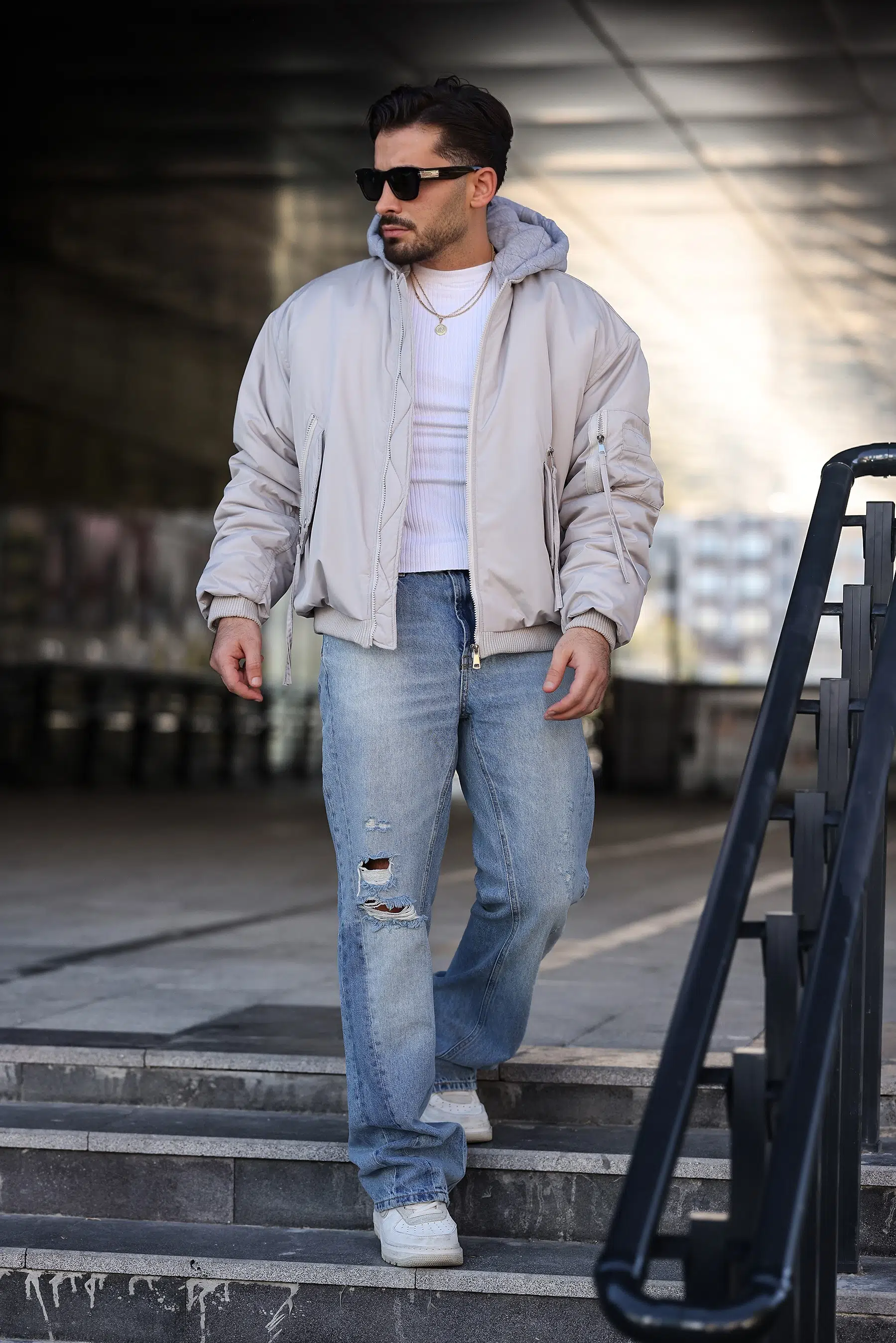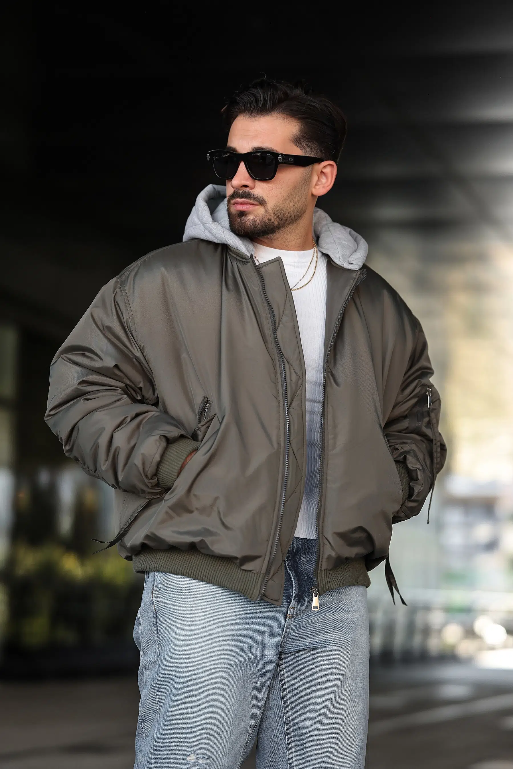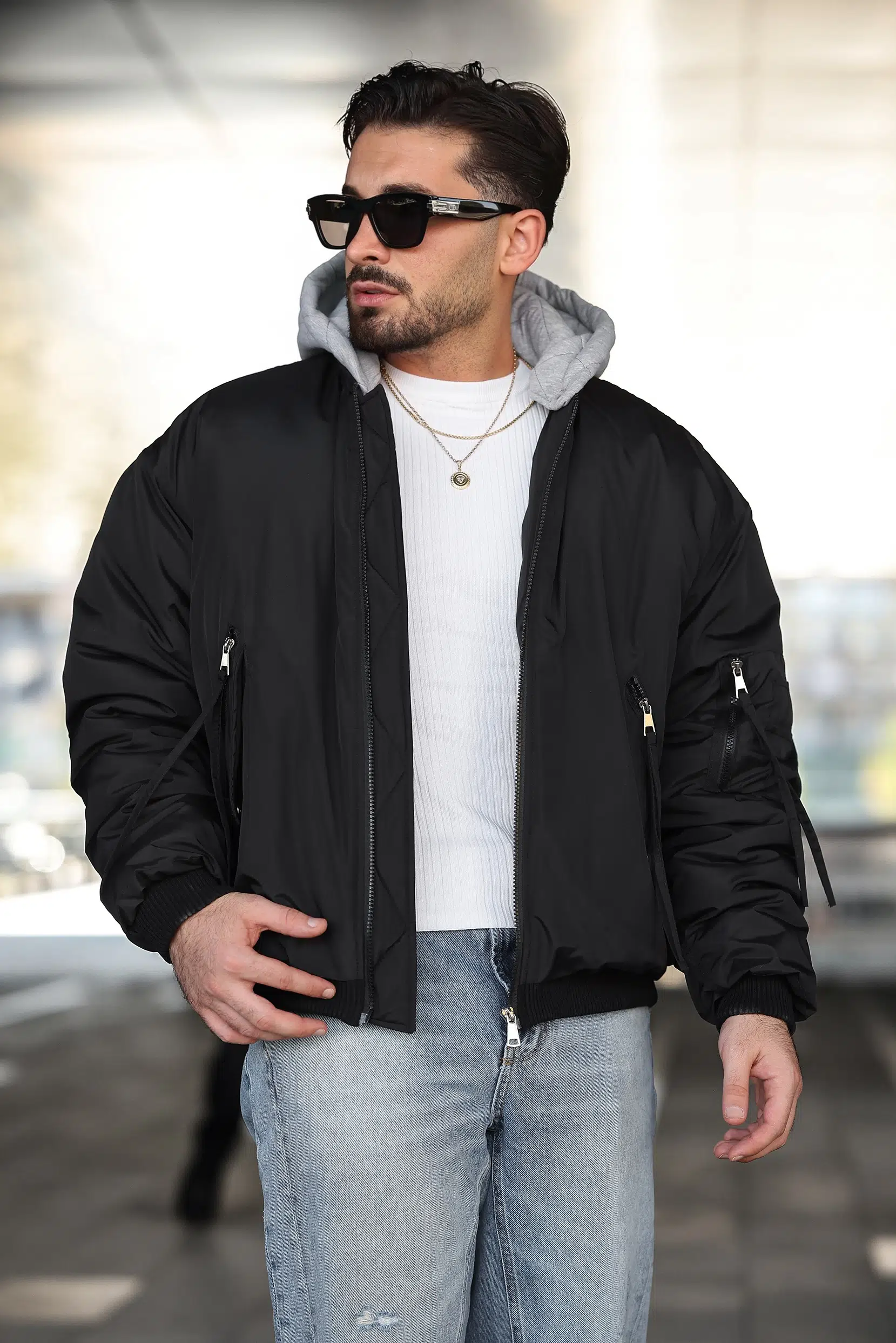 ERKEK KAPÜŞON ÇIKARTMALI BOMBER MONT