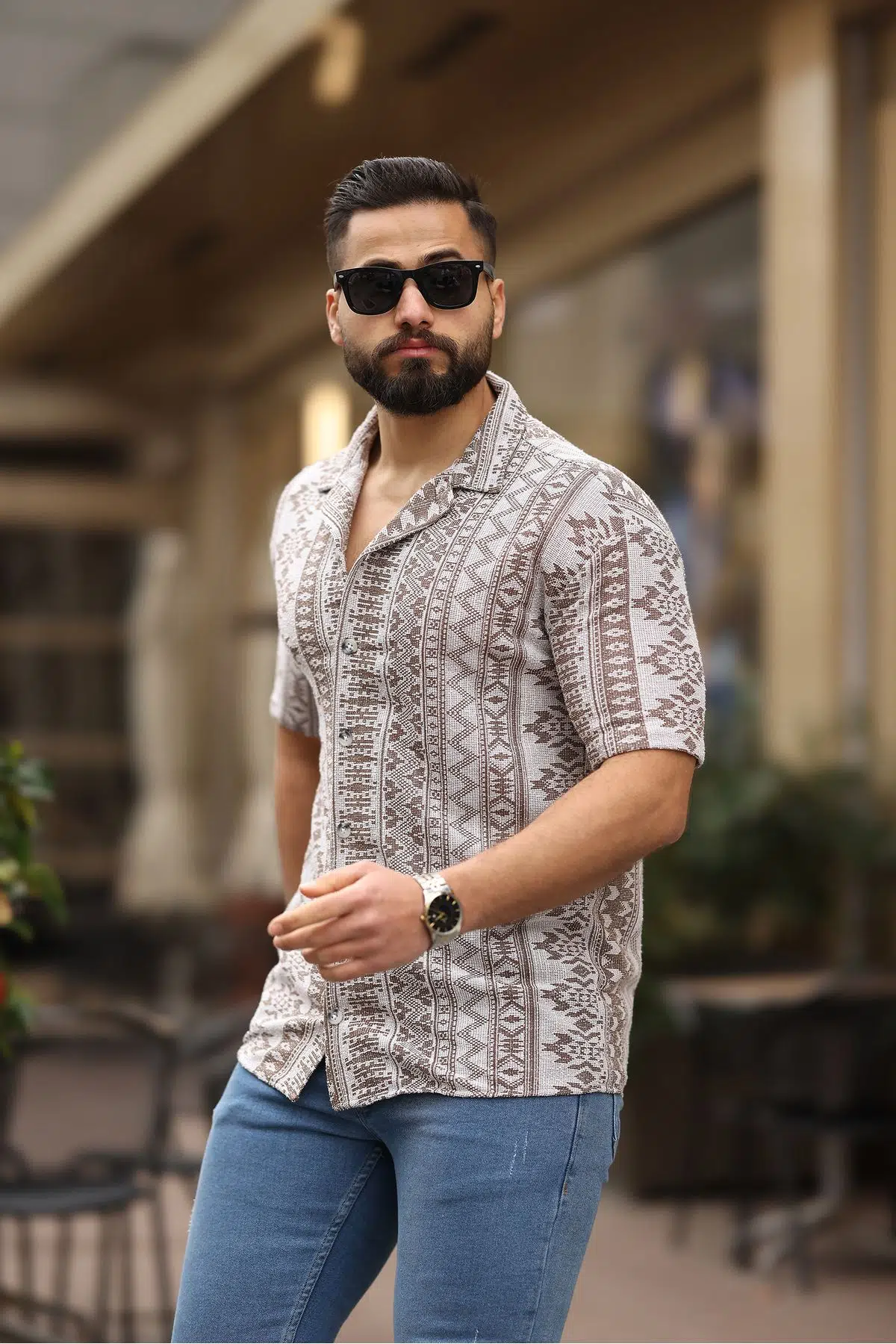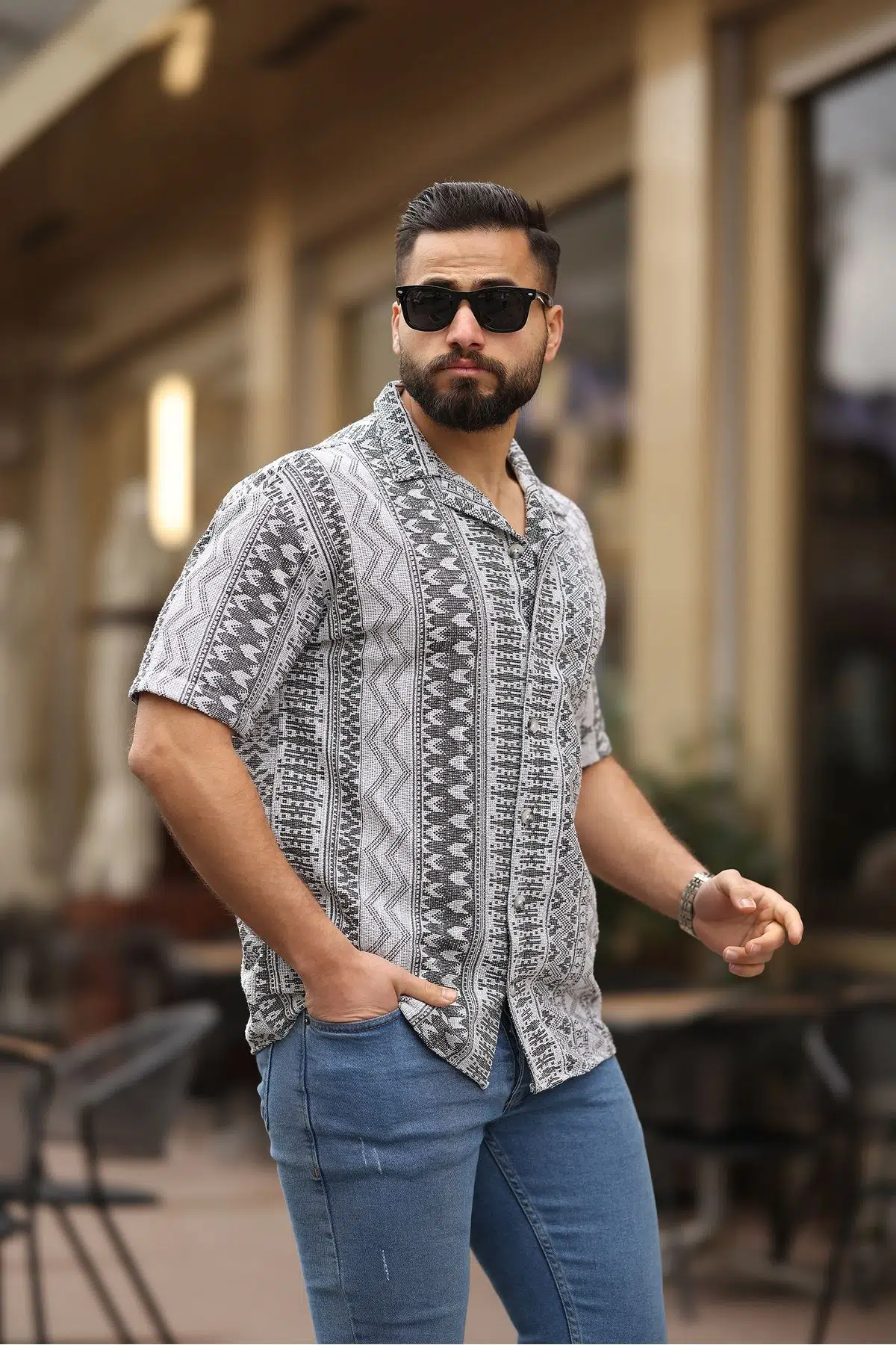 ERKEK OVERSIZE KISA KOLLU DESENLİ GÖMLEK