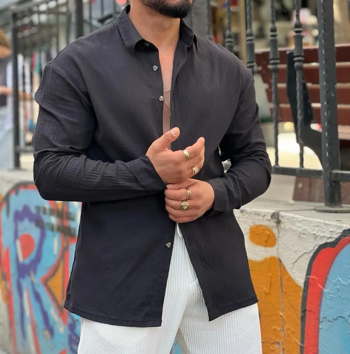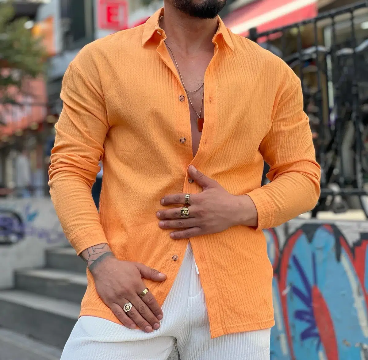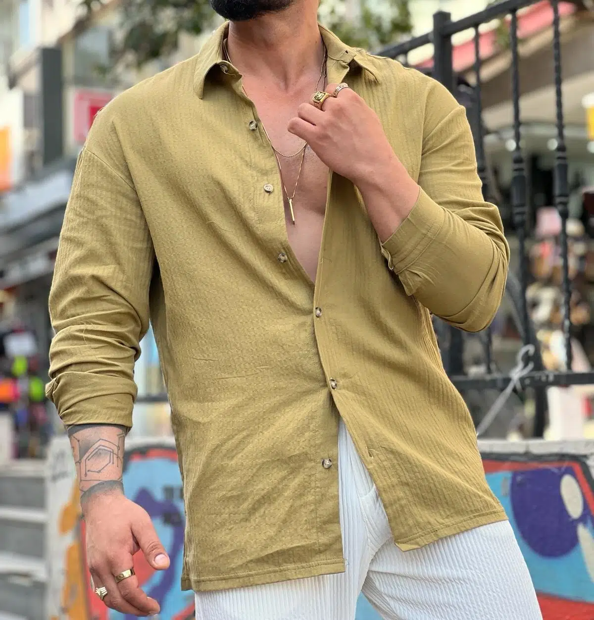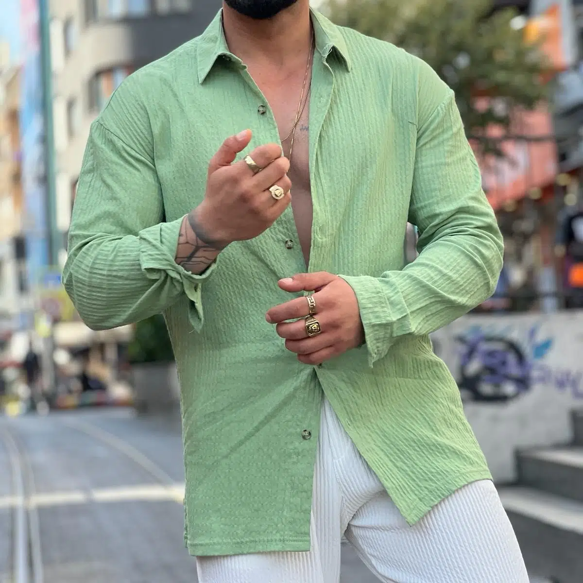 ERKEK UZUN KOLLU KETEN OVERSIZE GÖMLEK