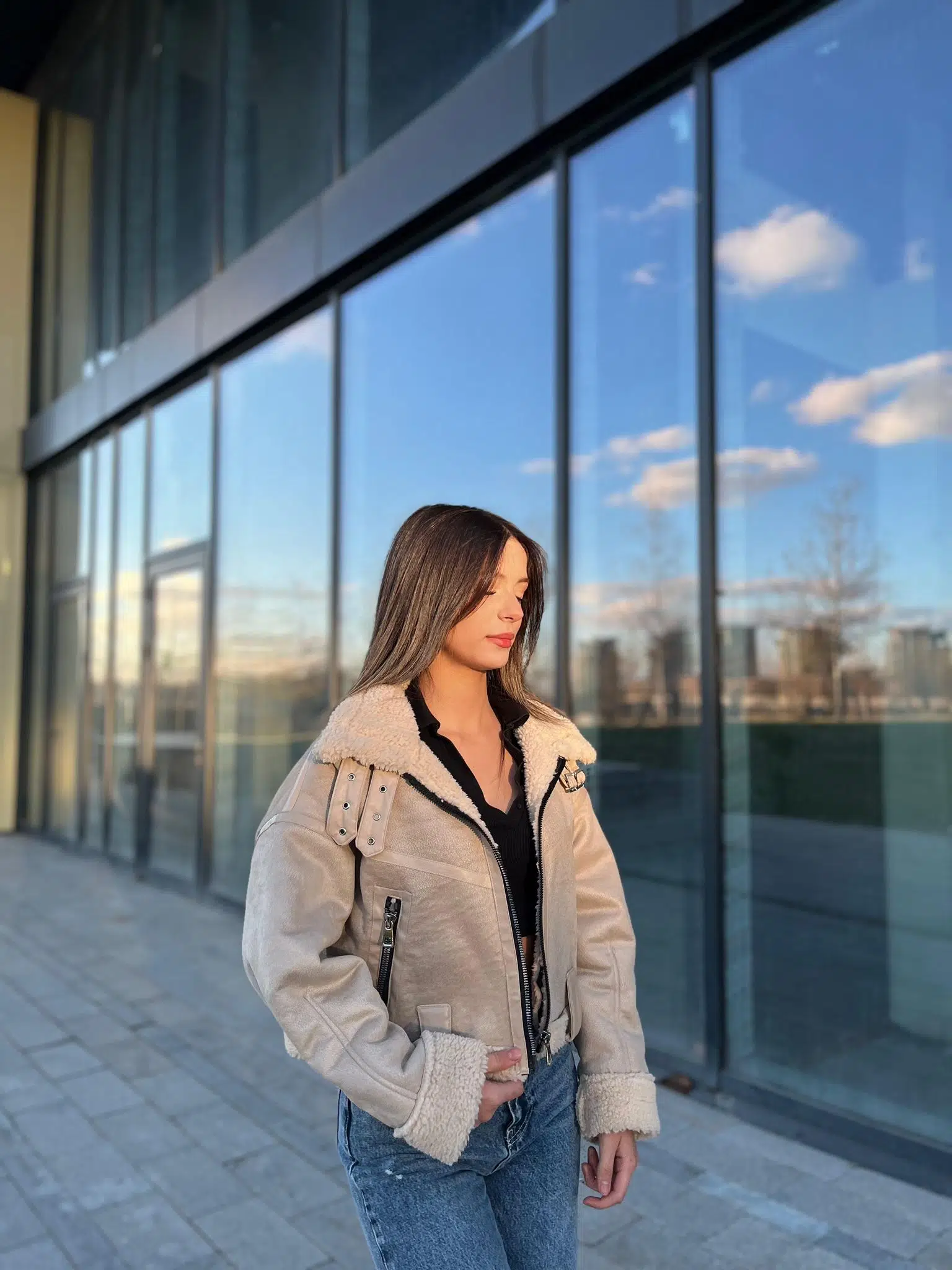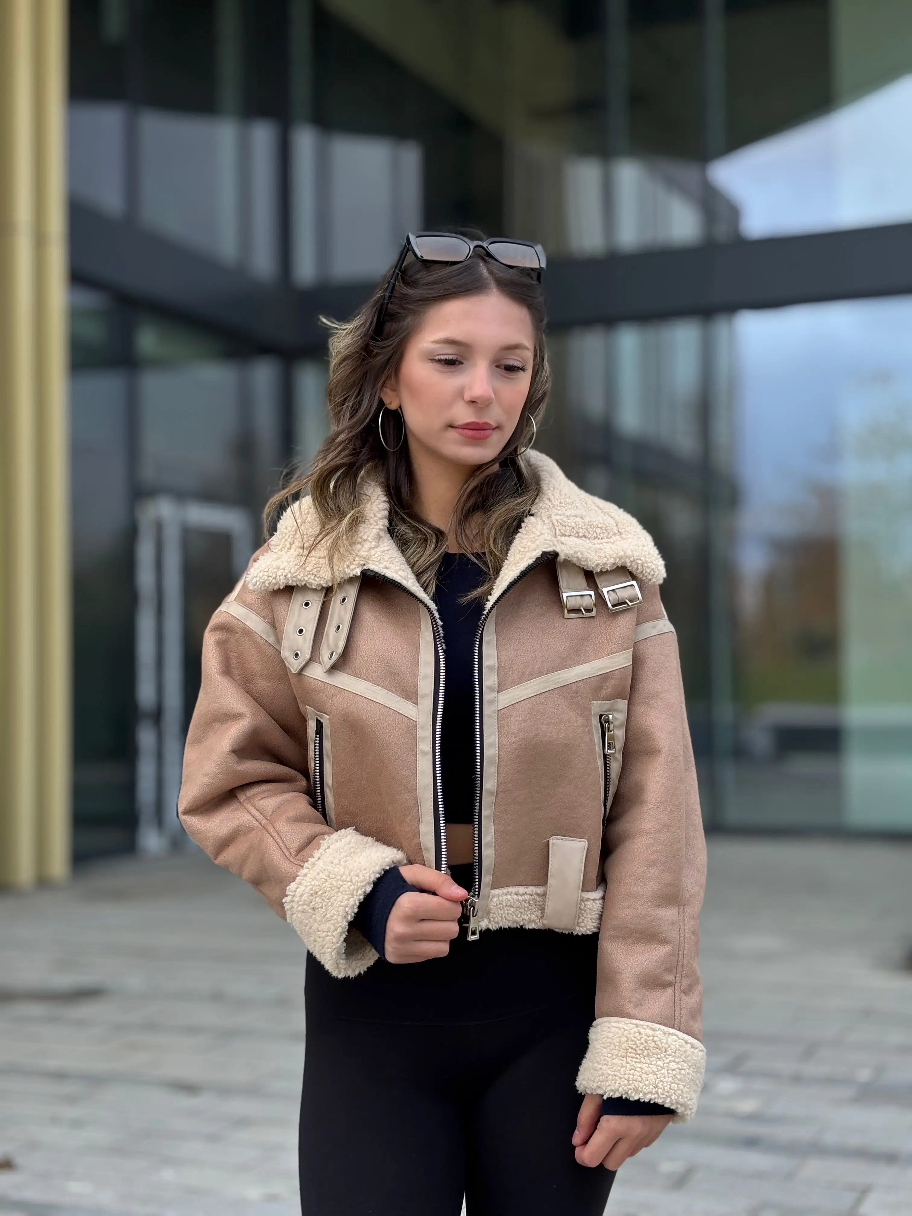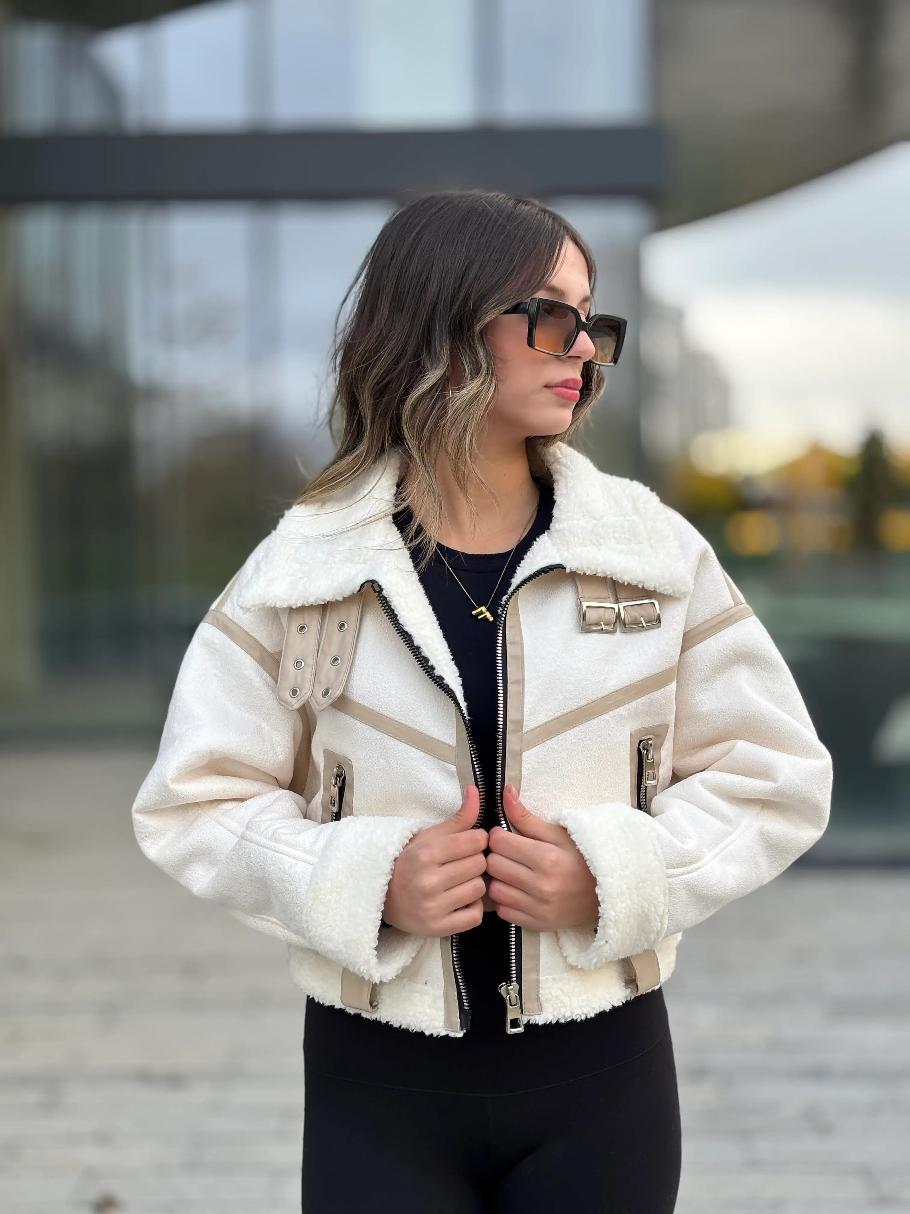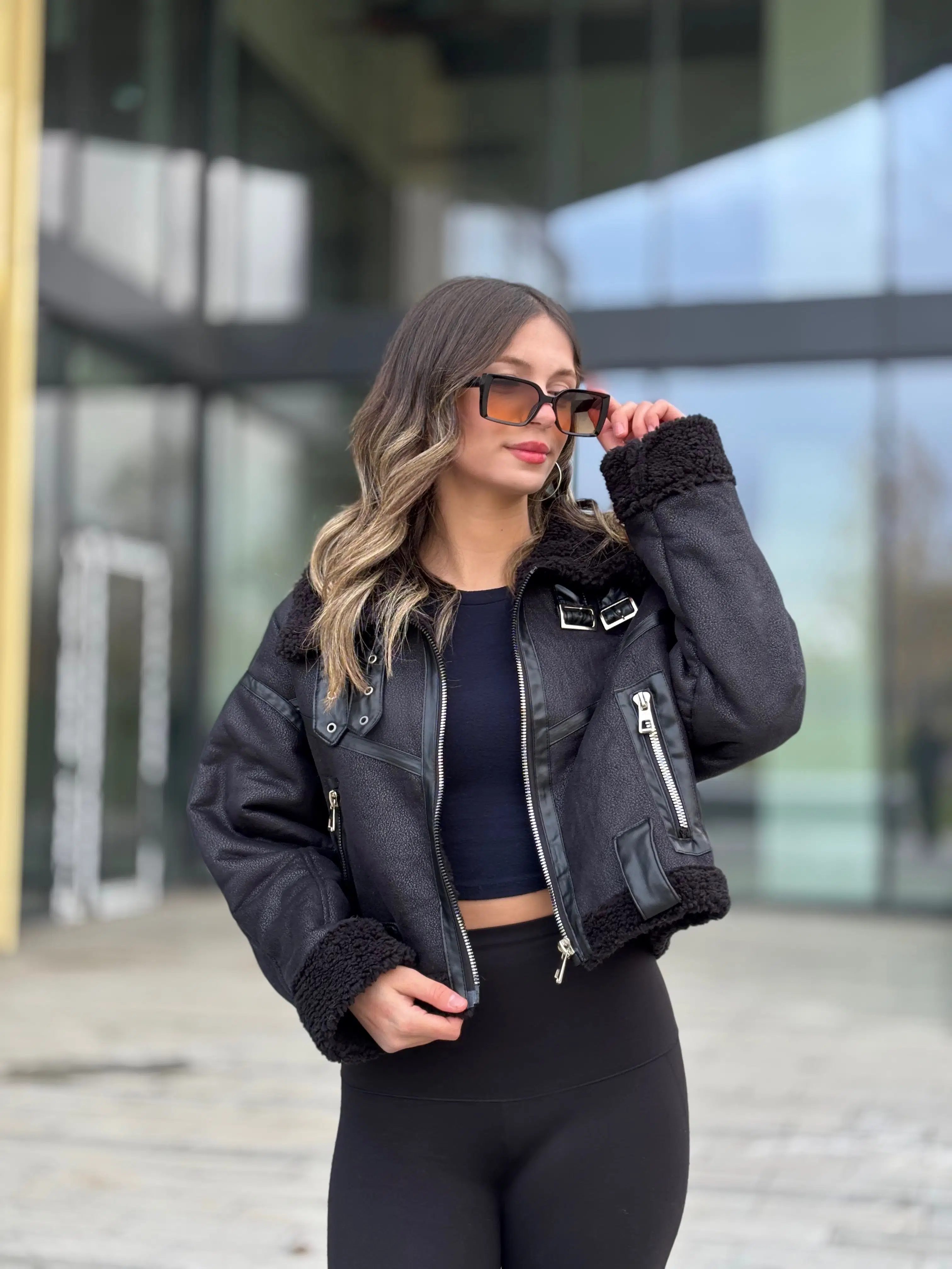 Ürünümüz Crop kalıptır. Kürk lamineli suni deri kullanılmıştır.Manken Boy: 172 cm, Kilo : 56 , Ürün beden S