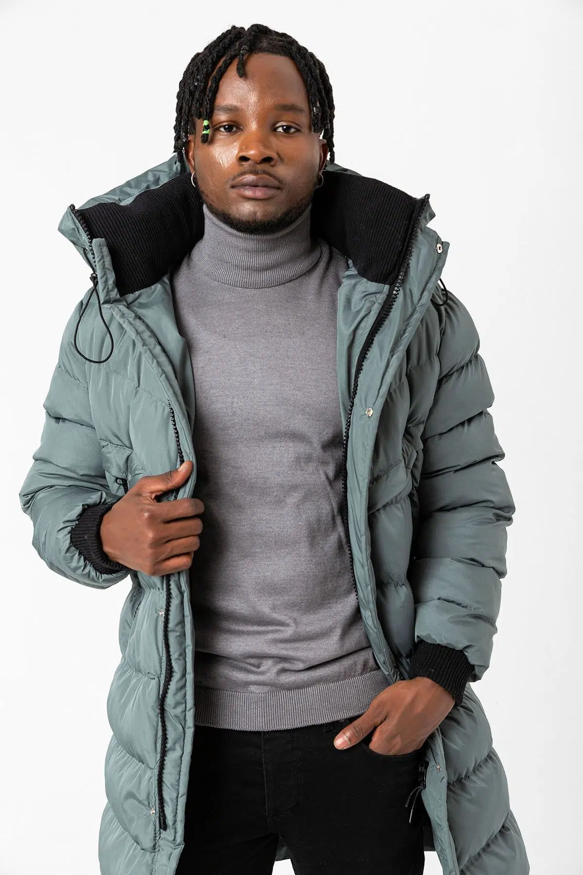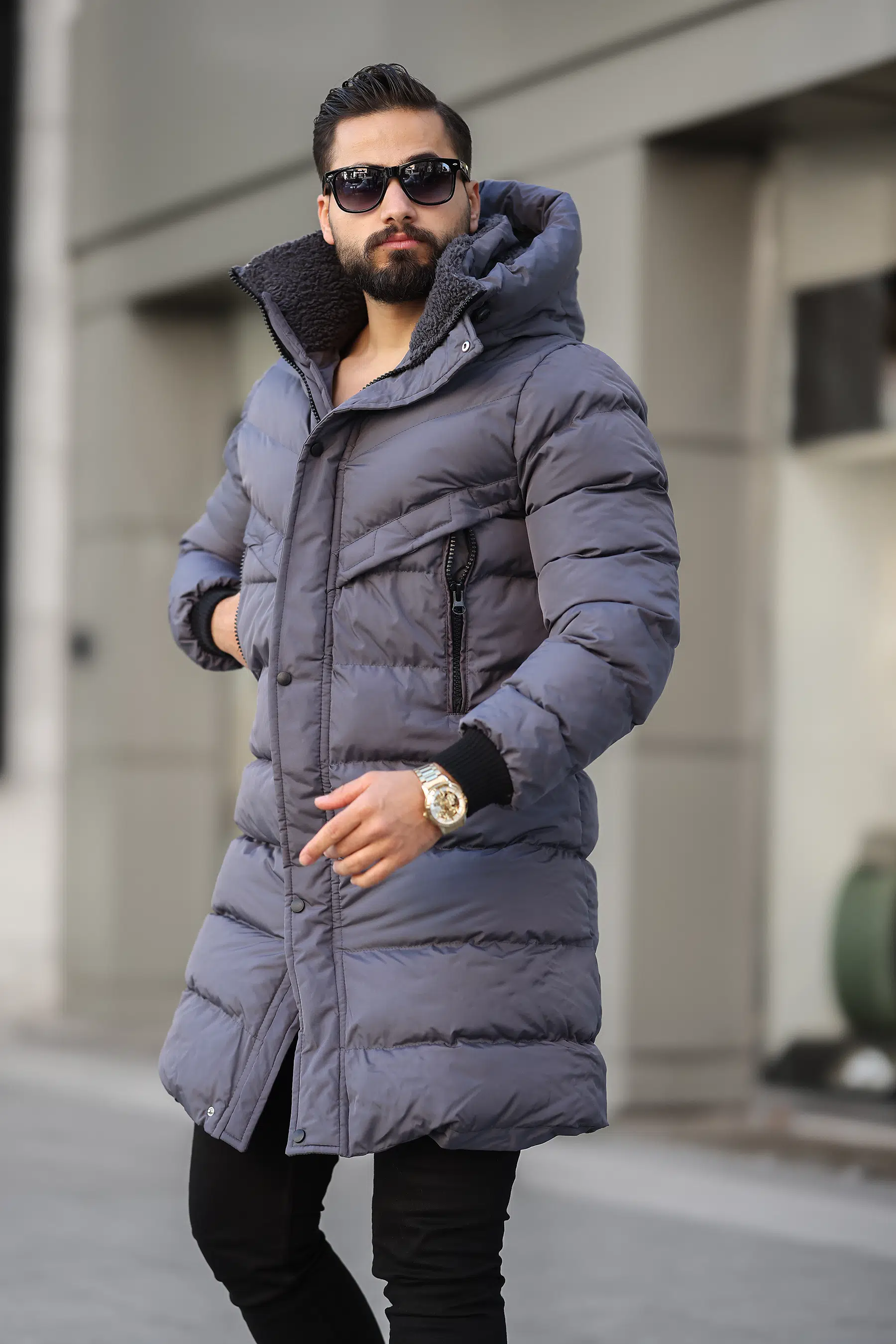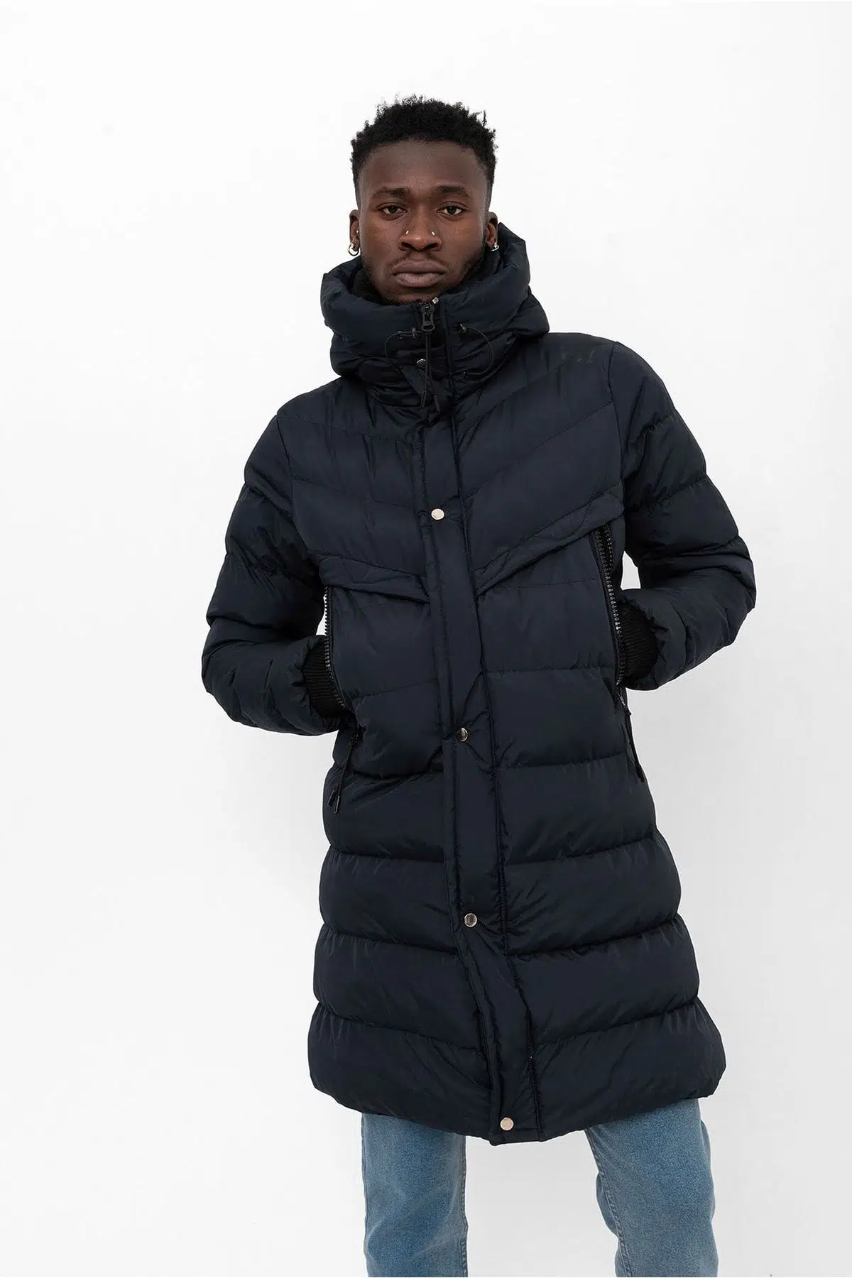 Kapüşonlu Uzun Erkek Şişme Mont 1150