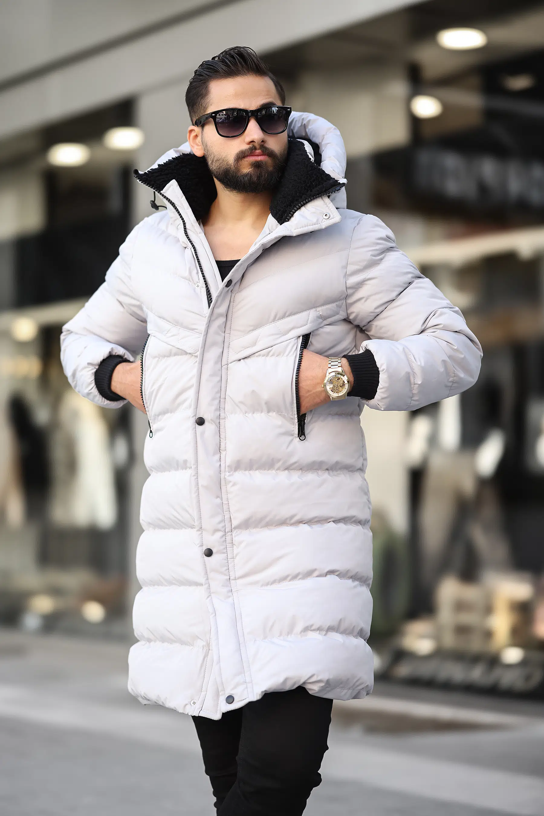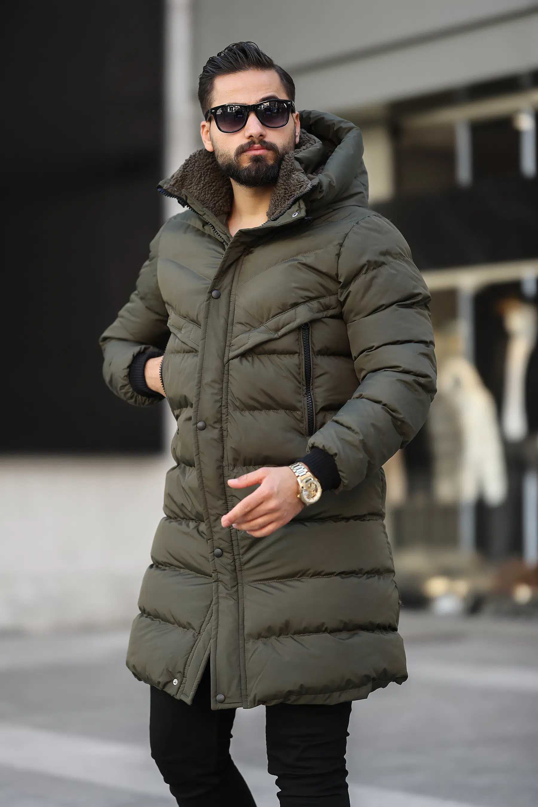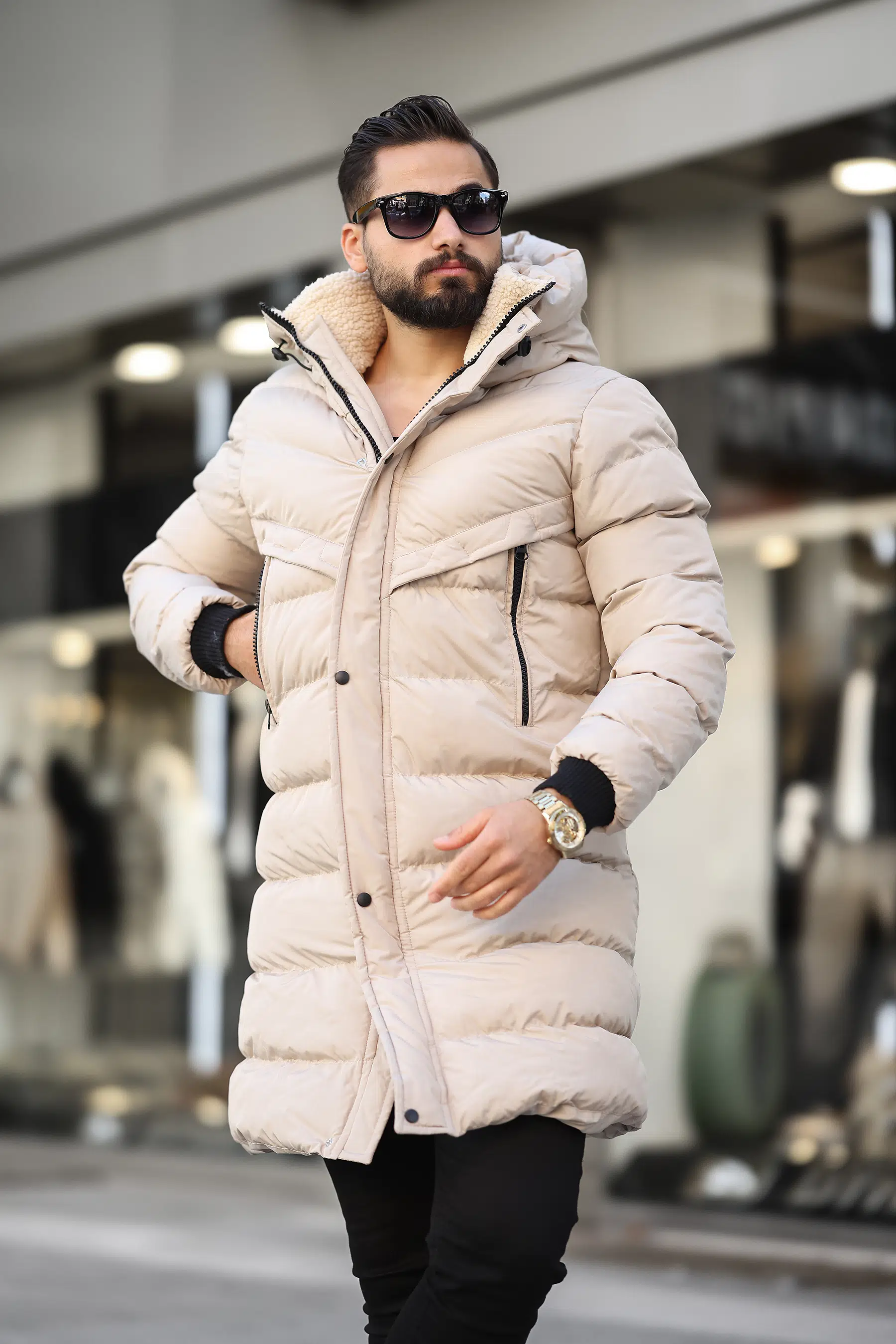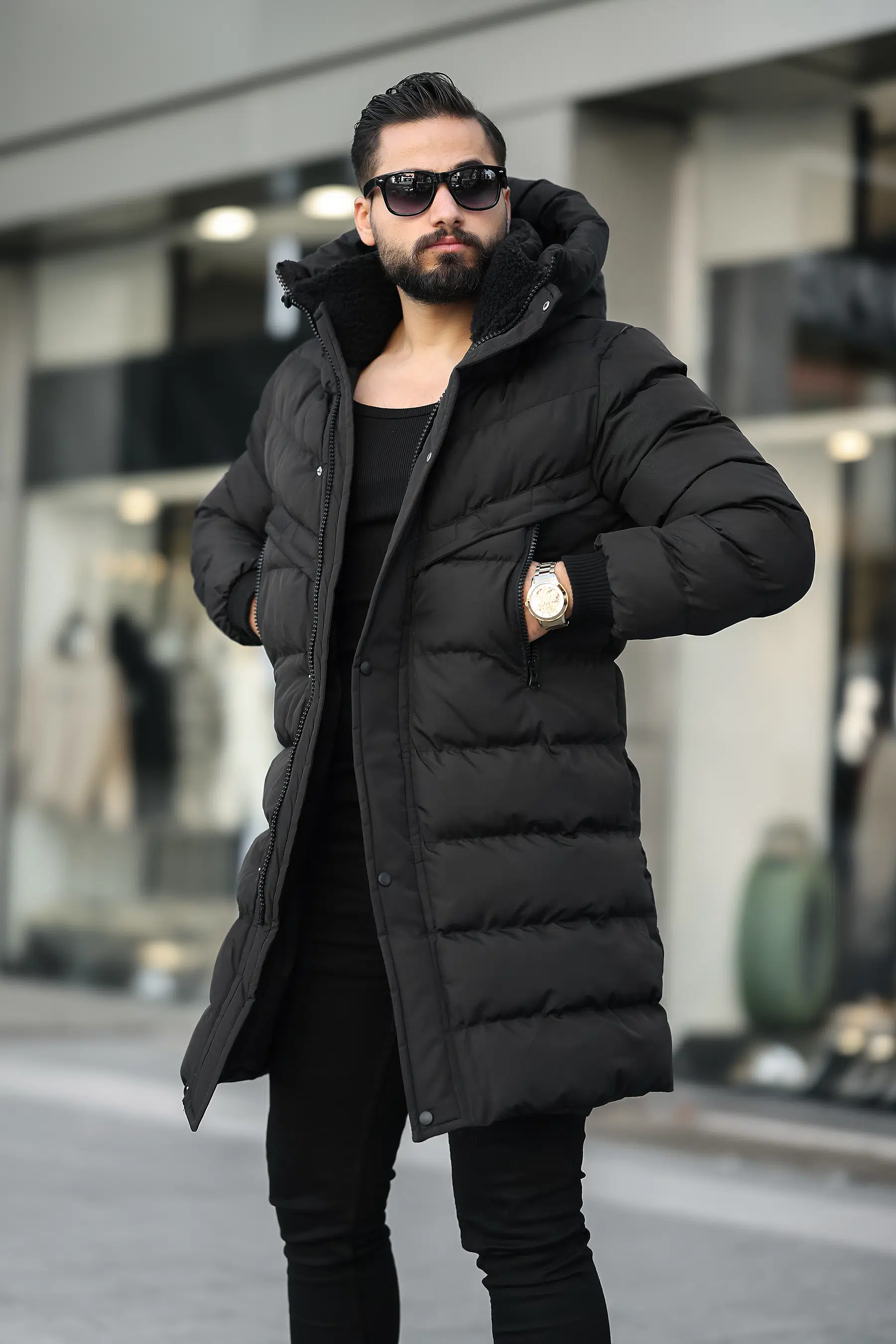 Kapüşonlu Uzun Erkek Şişme Mont 1150